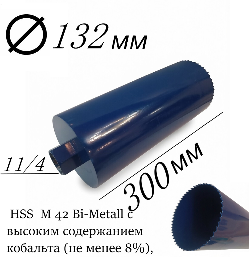 Наружный диаметр: 132 мм Коронка по дереву диаметр 132 мм глубина 300 мм